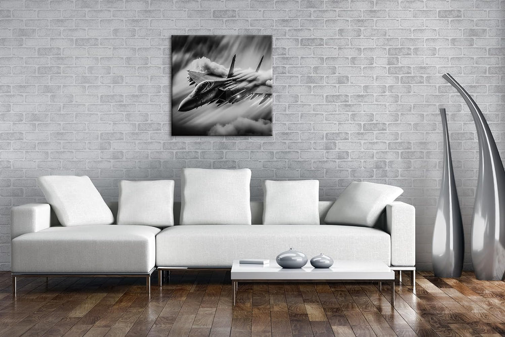 deyoli Düsenjet im Feuernebel Format: 70x70 cm Effekt: Schwarz/Weiss als Leinwandbild, Motiv fertig