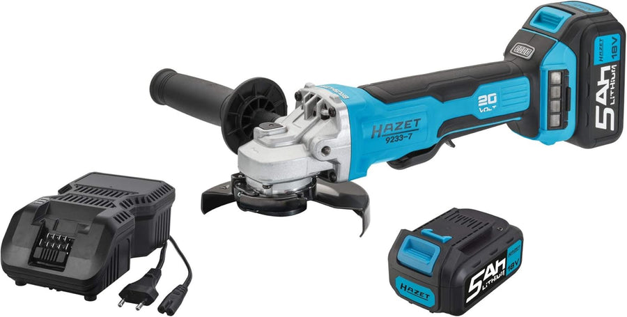 HAZET Winkelschleifer-Satz (3teilig, Akku-Winkelschleifer, Schnell-Ladegerät, Li-Ionen-Akku 18 V, 5.