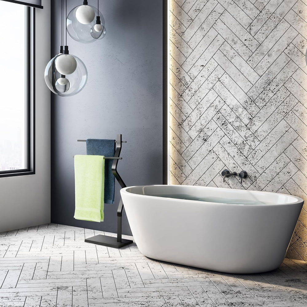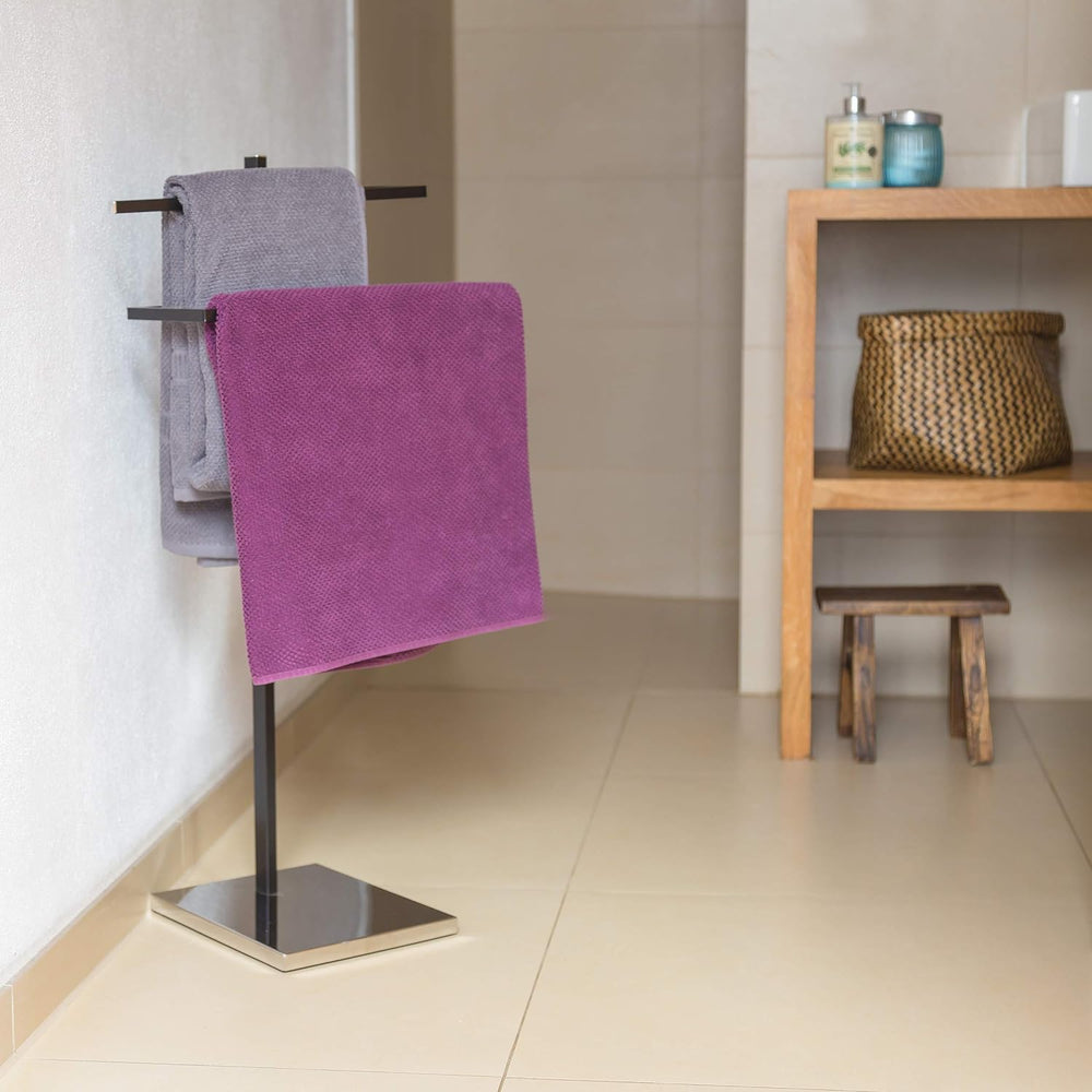 Relaxdays Handtuchständer geknicktes Design, 2 Metallstangen, HxBxT: 85x43,5x20 cm, Badständer, Stah