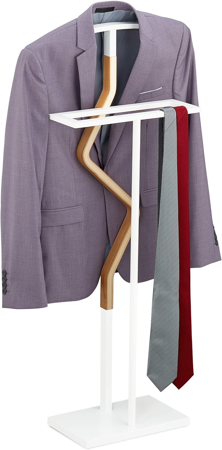 Relaxdays Herrendiener, für Anzug & Hose, Holz Metall Mix, Schlafzimmer, Kleiderbutler, HBT 107 x 48