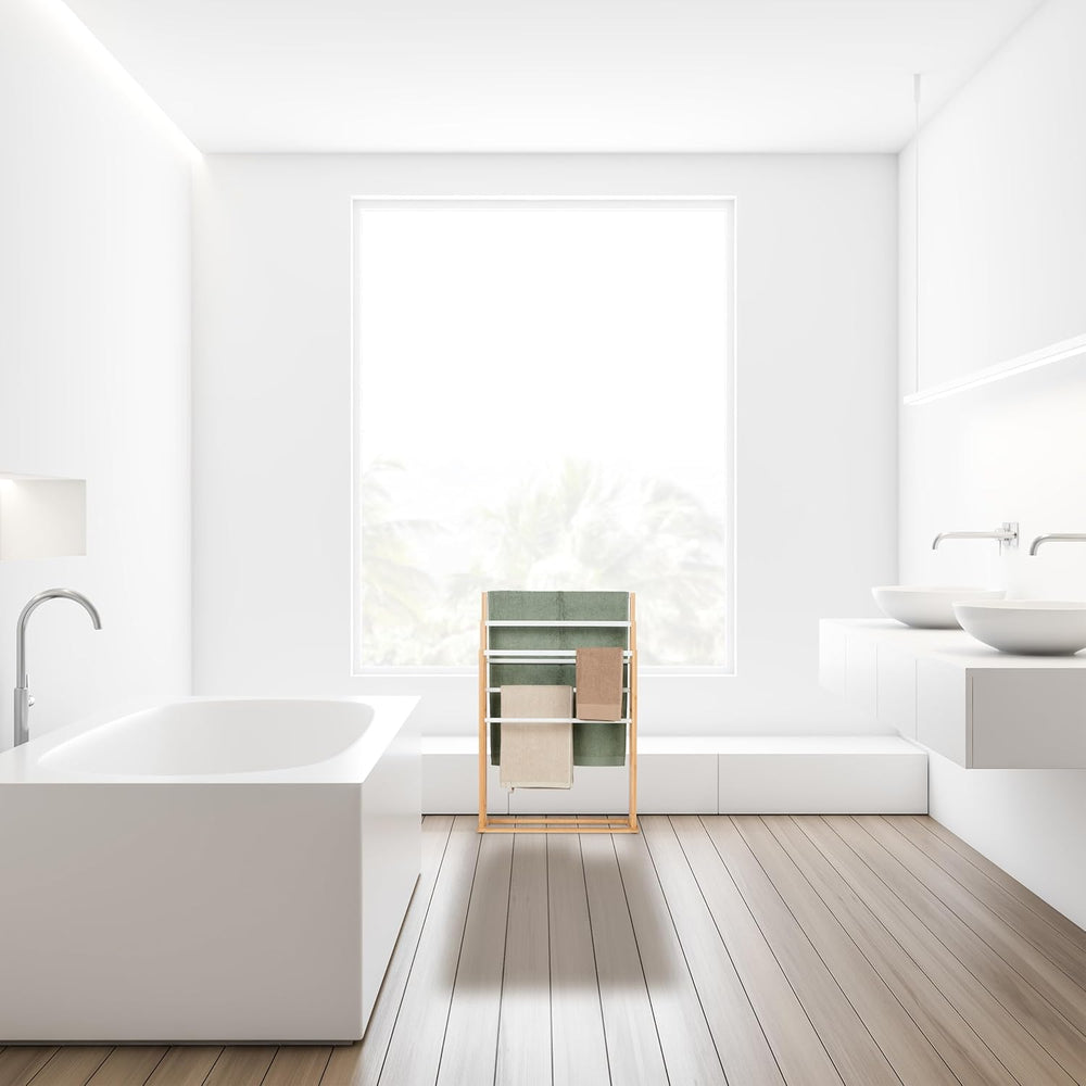 Relaxdays Handtuchständer, 6 Stangen, Bambus, H x B x T: 82 x 55 x 24 cm, freistehend, Bad Duschtuch