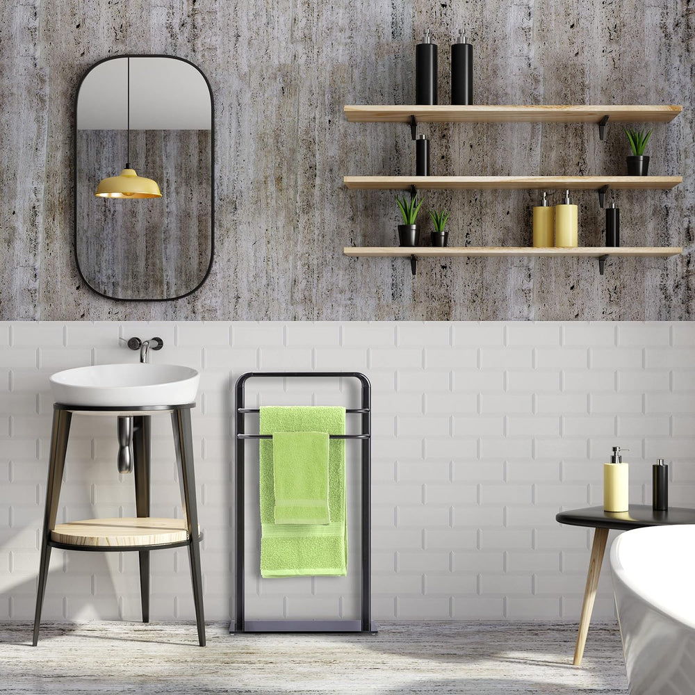 Relaxdays Handtuchständer mit 2 Handtuchstangen in U-Form HBT 82 x 44 x 28 cm Handtuchhalter stehend