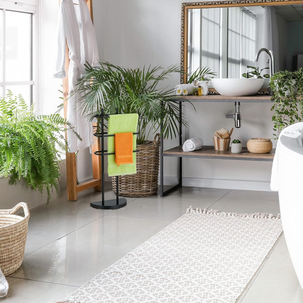 Relaxdays Handtuchständer dreiarmig, Handtuchhalter, HBT: 86,5 x 50 x 20 cm, Duschtuchhalter, für Ba