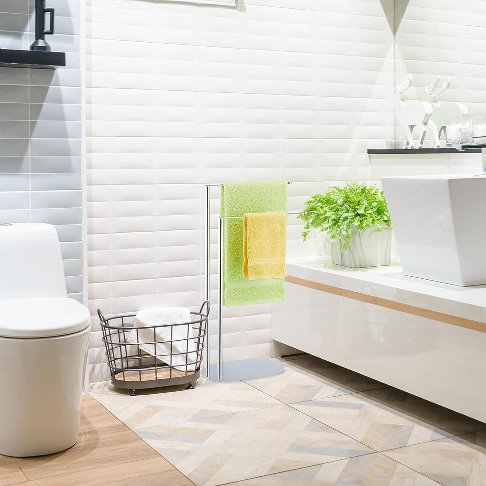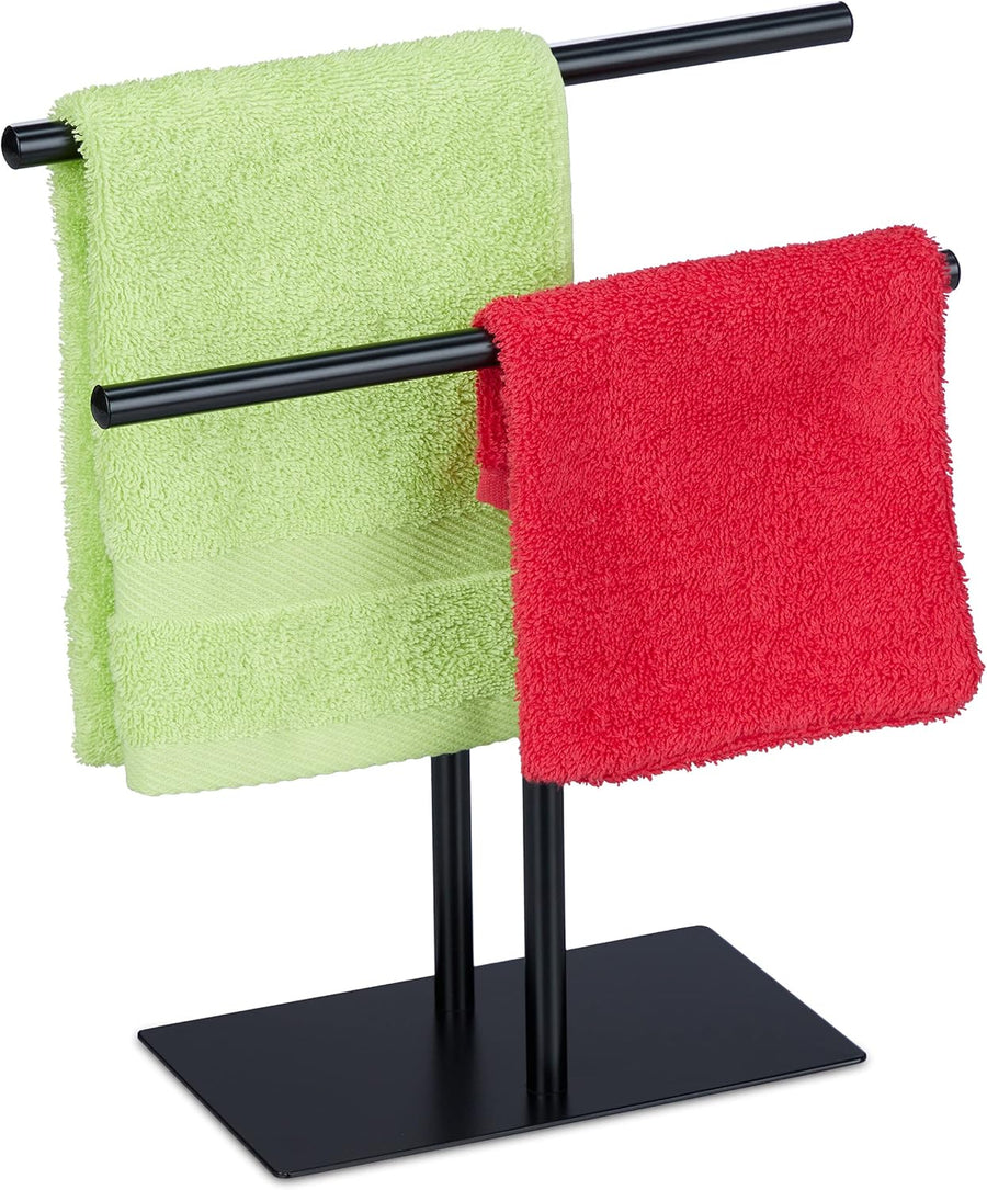 Relaxdays Handtuchständer, 2 Stangen, freistehend, Stahl, H x B x T: 77 x 40 x 18 cm, Duschtuchhalte