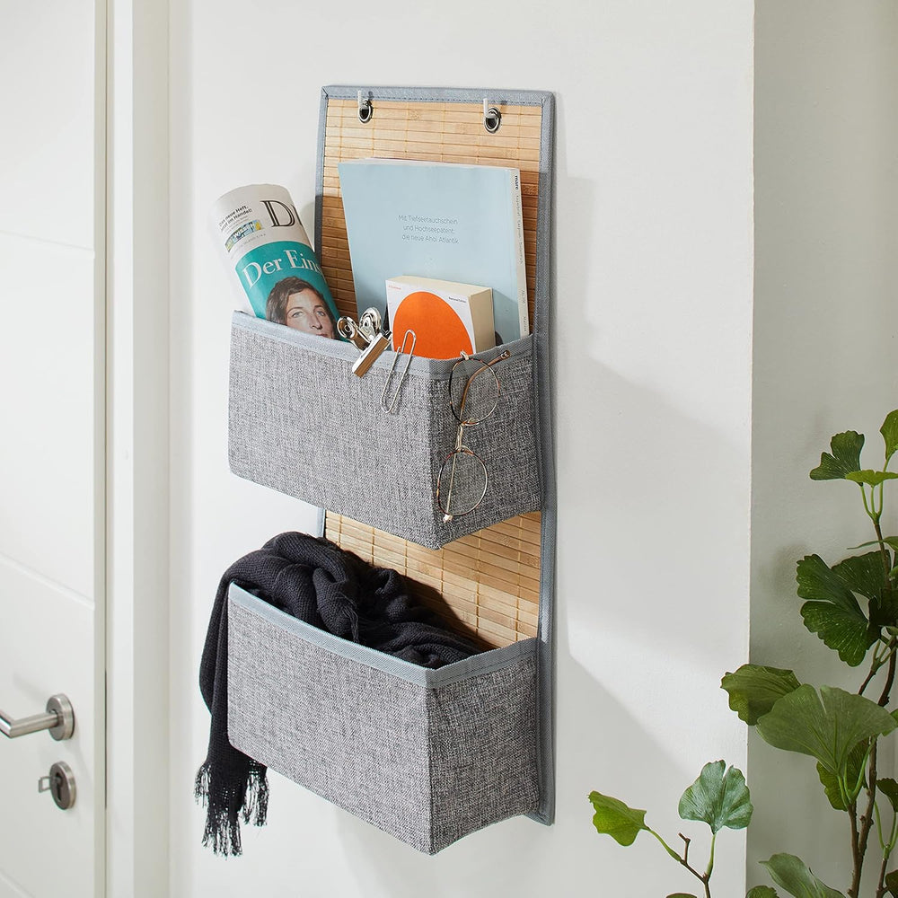 Relaxdays Hängeorganizer Bambus, Organizer mit 2 Aufbewahrungstaschen, für Tür & Wand, HBT: 60 x 40