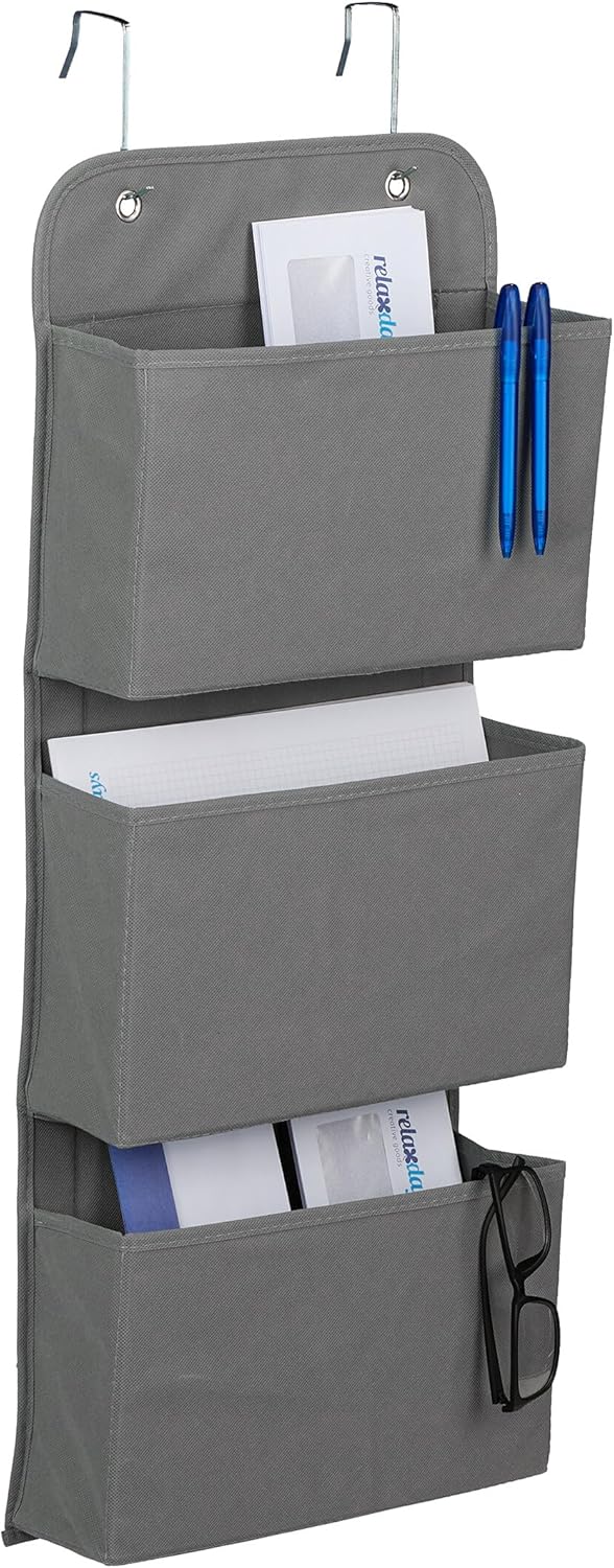 Relaxdays Hängeorganizer, 3 Fächer, Tür & Wand, Türregal mit Haken zum Einhängen, Bad, Flur, HBT: 75