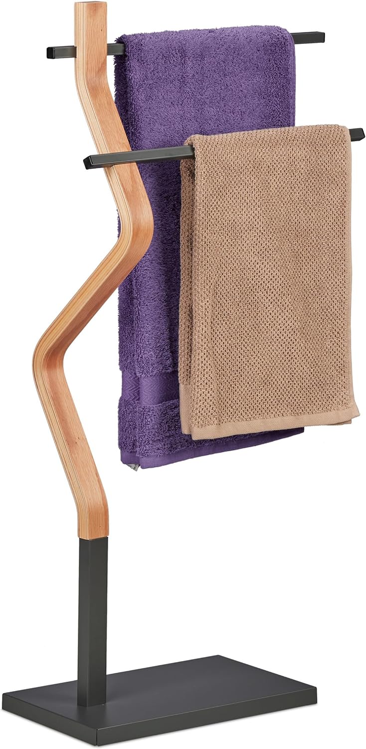 Relaxdays Handtuchständer geschwungen H x B x T: ca. 86 x 50 x 20 cm freistehender Handtuchhalter in