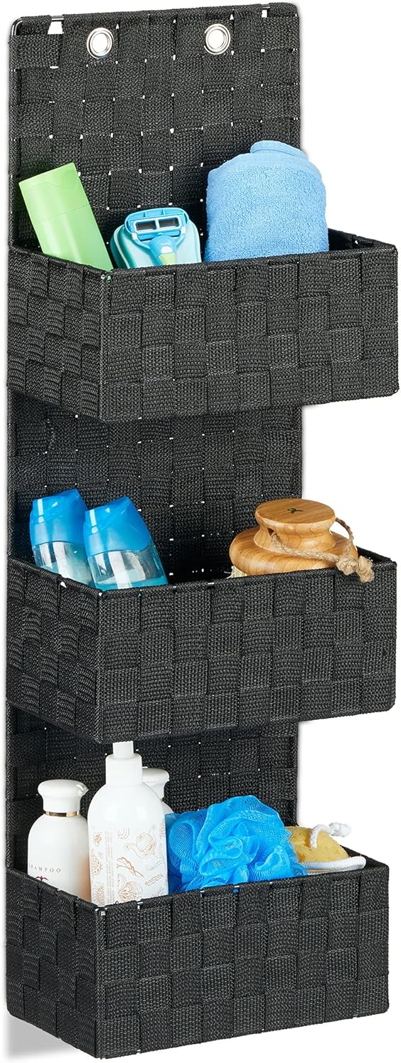 Relaxdays Hängeorganizer Stoff, Türorganizer mit 3 Aufbewahrungskörben, Wandorganizer Bad, PP, HBT: