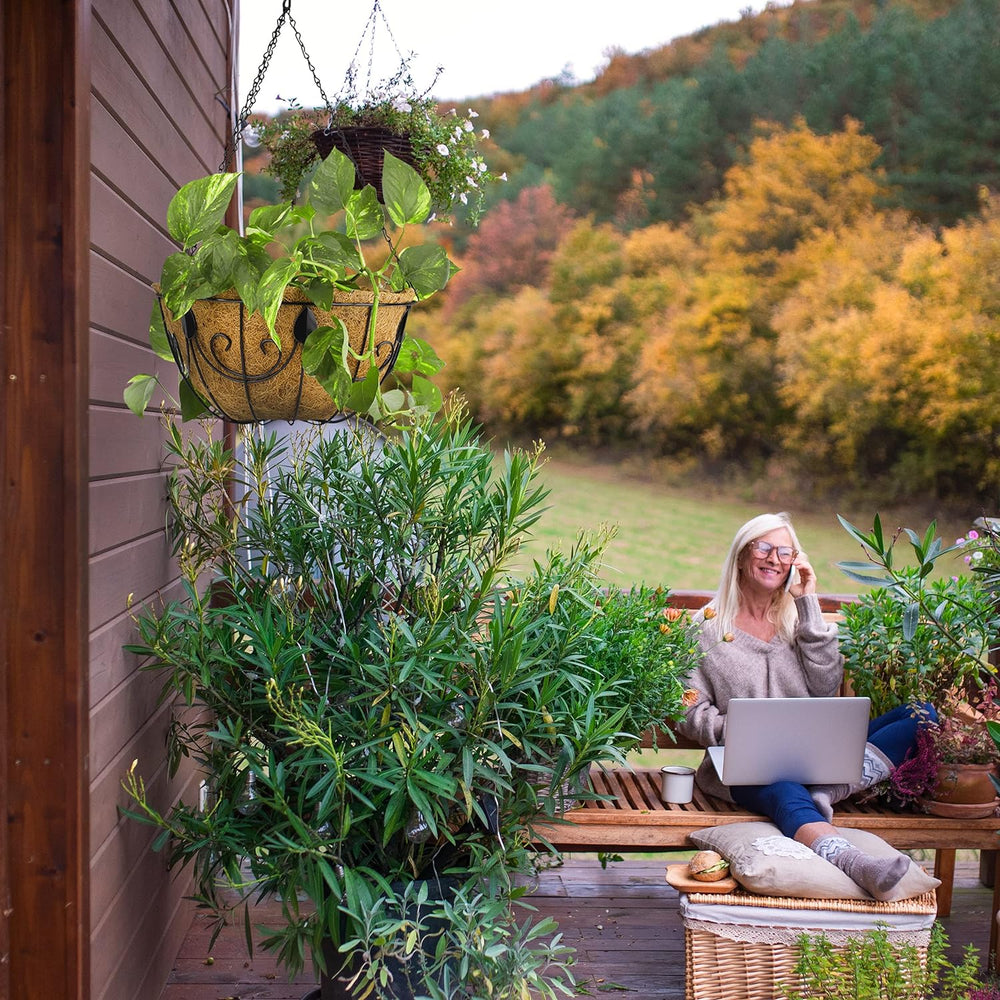 Relaxdays Hängekorb 3er Set, Kokos, Blumenampel mit Kette, 35 cm Durchmesser, je Pflanzenhalter 10 L