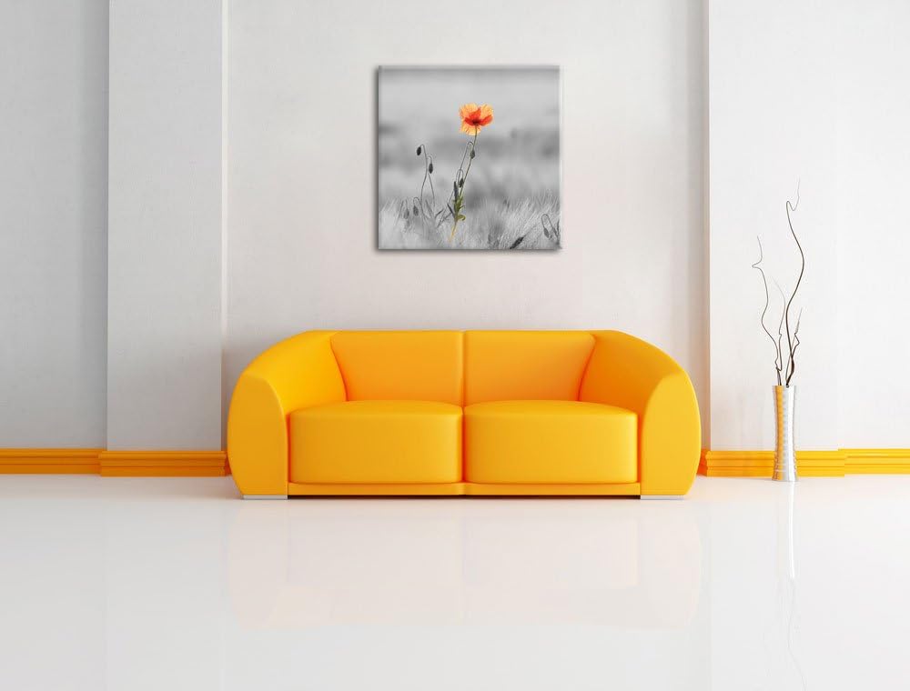 Pixxprint Rote Mohnblume im Feld als Leinwandbild/Grösse: 70x70 cm/Wandbild/Kunstdruck/fertig bespan