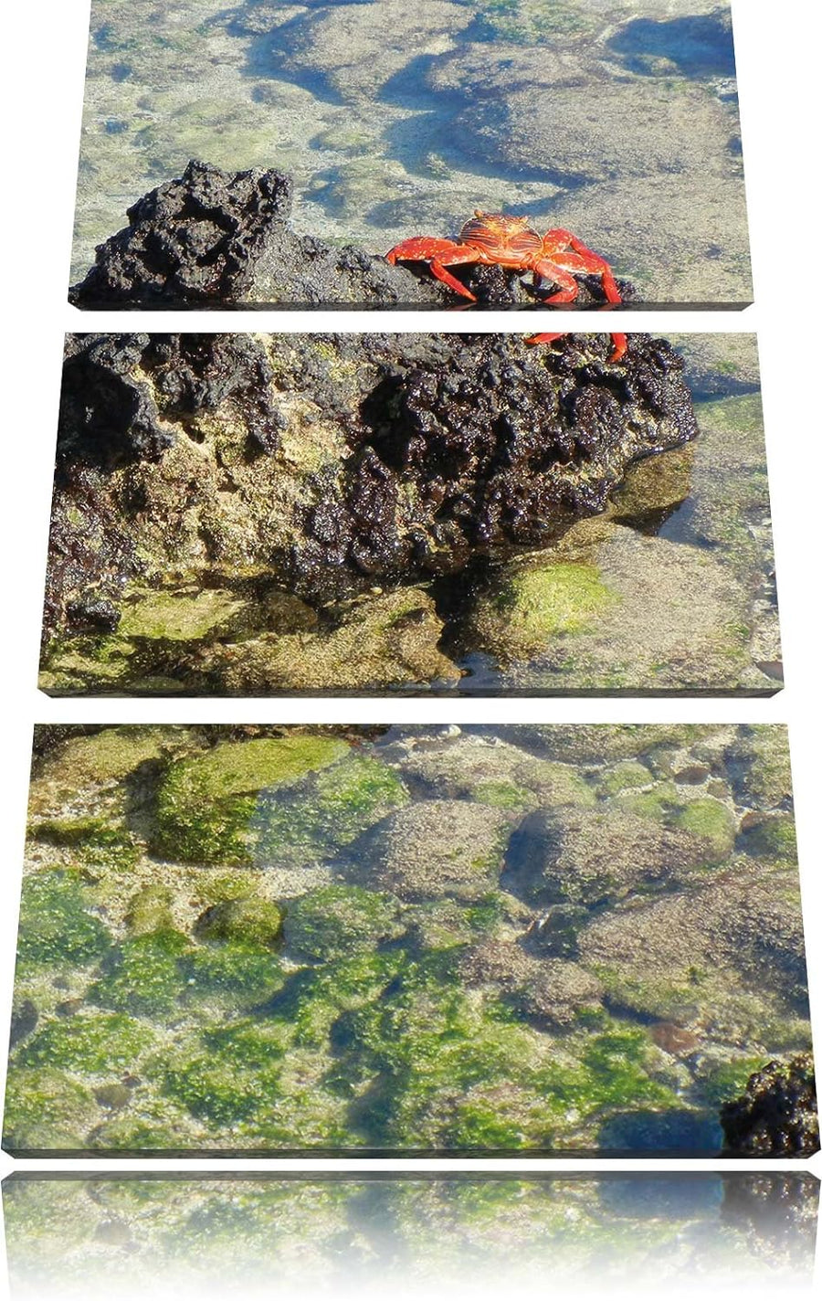 Pixxprint rote Krabbe auf Stein als Leinwandbild/Grösse: 3 Teilig (120x80) cm/Wandbild/Kunstdruck/fe
