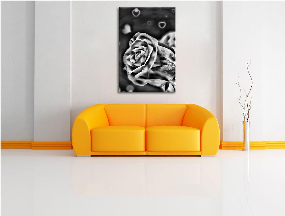 Pixxprint rote Rose gebettet auf schwarzem Samt als Leinwandbild/Grösse: 100x70 cm/Wandbild/Kunstdru