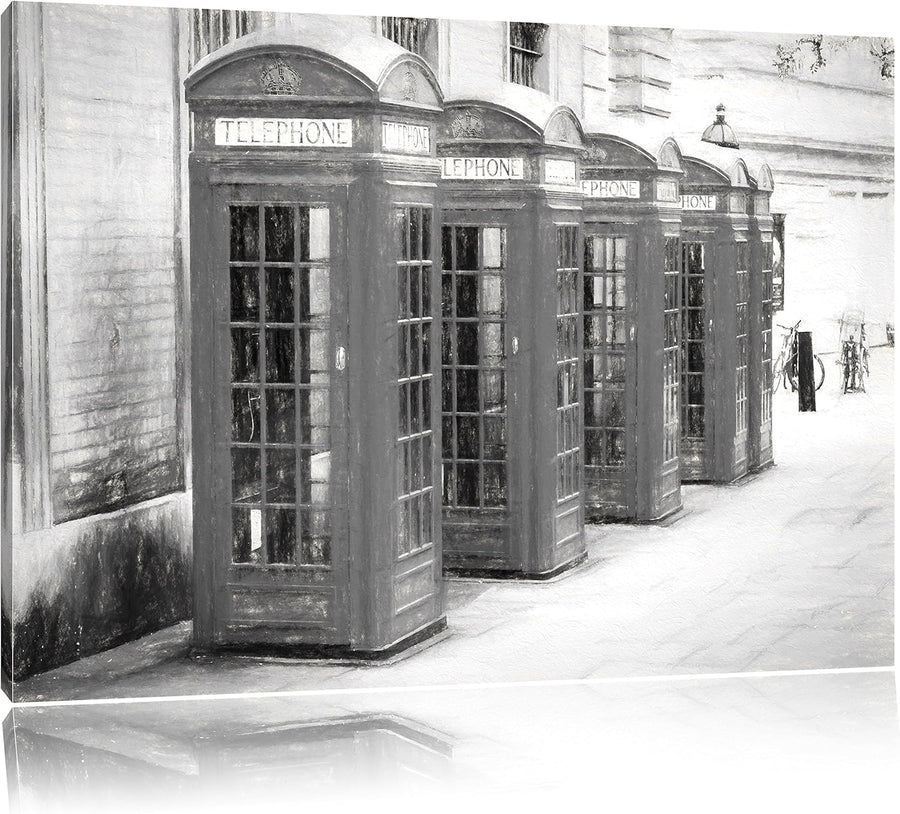 Pixxprint rote Londoner Telefonzellen Kunst als Leinwandbild/Grösse: 100x70 cm/Wandbild/Kunstdruck/f