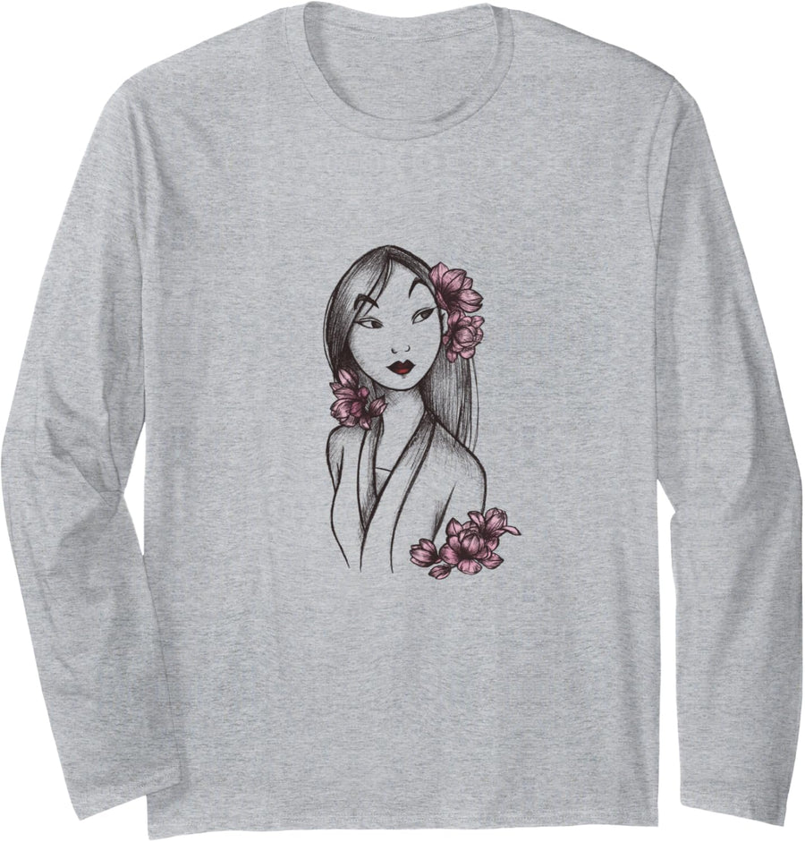 Disney Mulan Sketched Floral Hair Portrait Langarmshirt