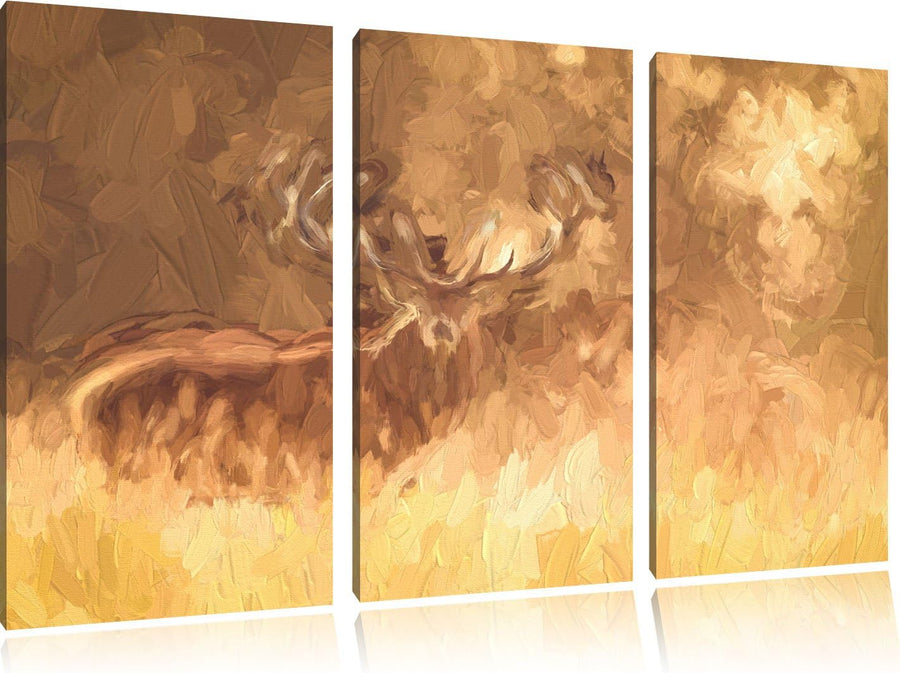 Pixxprint Rotwild im goldenen Morgenlicht als Leinwandbild/Grösse: 3 Teilig (120x80) cm/Wandbild/Kun