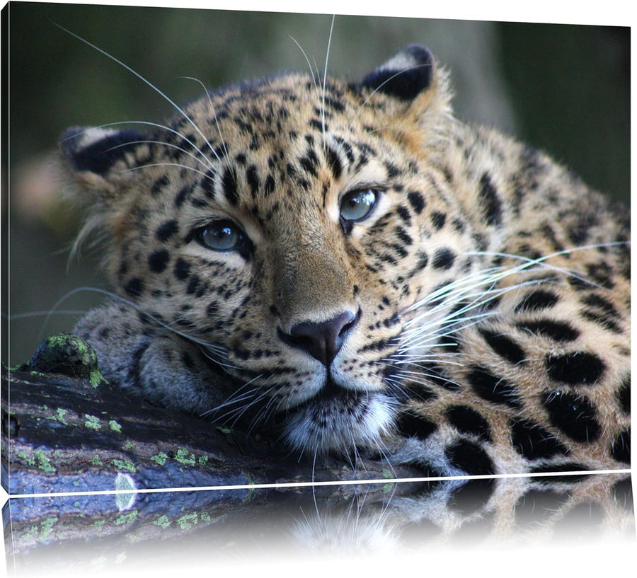 Pixxprint ruhender Leopard als Leinwandbild/Grösse: 70x70 cm/Wandbild/Kunstdruck/fertig bespannt, 70