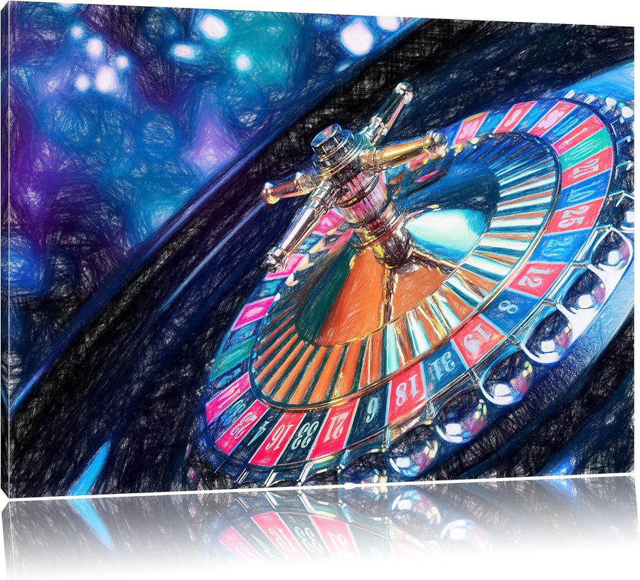 Pixxprint Roulettetisch / 100x70cm Leinwandbild bespannt auf Holzrahmen/Wandbild Kunstdruck Dekorati