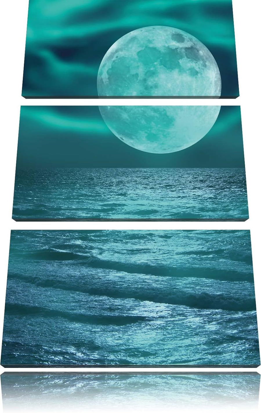 Pixxprint ruhiges Meer mit Vollmond 3-Teiler Leinwandbild 120x80 Bild auf Leinwand