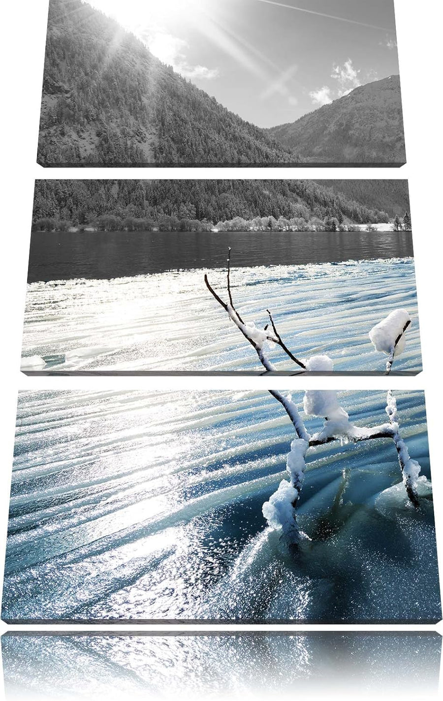 Pixxprint Ruhiger See im Winterwald als Leinwandbild/Grösse: 3 Teilig (120x80) cm/Wandbild/Kunstdruc