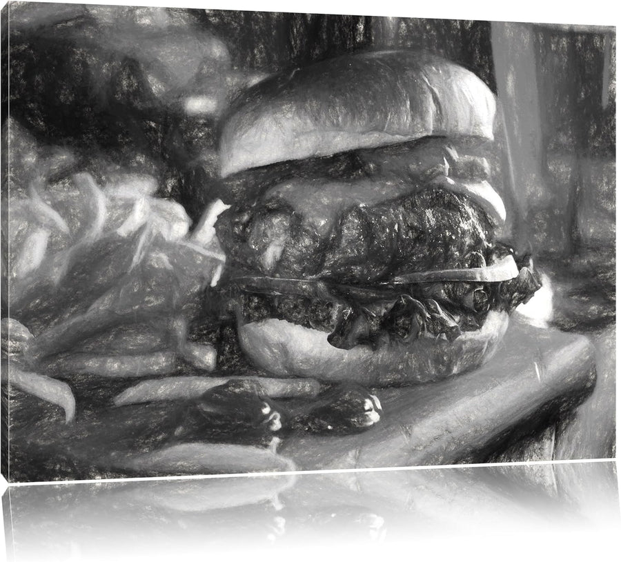 Pixxprint Saftiger Chili Cheese Burger Kohle Zeichnung Effekt 3-Teiler Leinwandbild 120x80 Bild auf