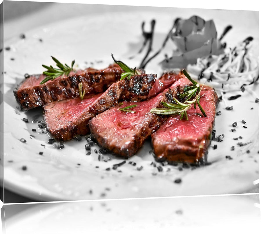 Pixxprint Saftiges Pfeffer Steak als Leinwandbild/Grösse: 3 Teilig (120x80) / Wandbild/Kunstdruck/fe