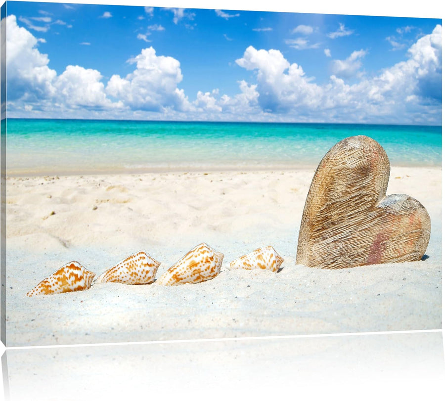Pixxprint Sandstrand mit Muscheln als Leinwandbild/Grösse: 100x70 cm/Wandbild/Kunstdruck/fertig besp