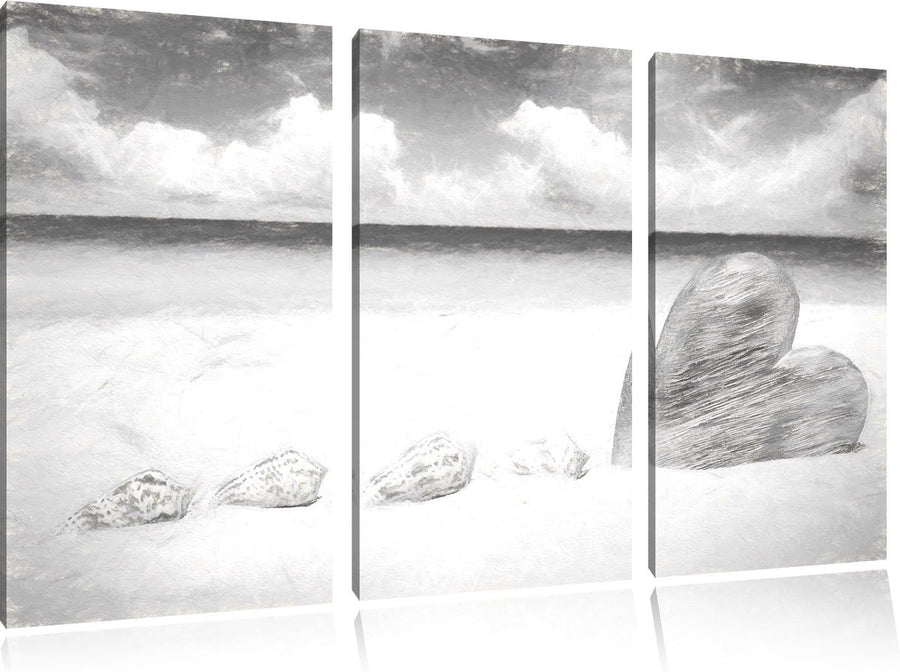 Pixxprint Sandstrand mit Muscheln als Leinwandbild/Grösse: 3 Teilig (120x80) cm/Wandbild/Kunstdruck/