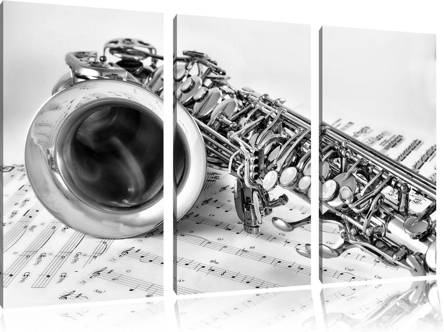 Pixxprint Saxophon auf Notenpapier als Leinwandbild/Grösse: 3 Teilig (120x80 cm) cm/Wandbild/Kunstdr