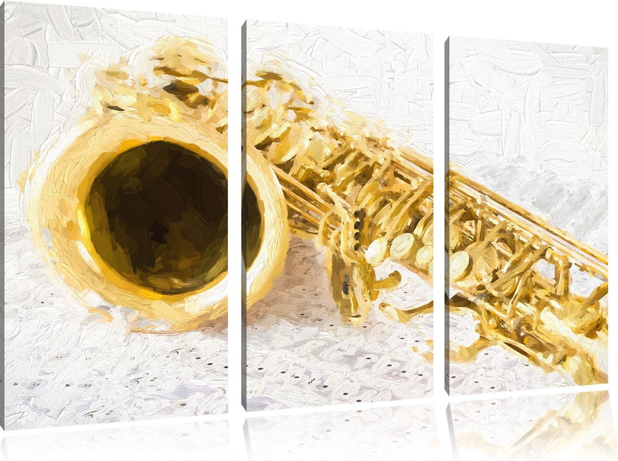 Pixxprint Saxophon / 3-Teilig/Gesamtmass 120cm Leinwandbild bespannt auf Holzrahmen/Wandbild Kunstdr