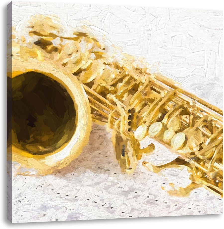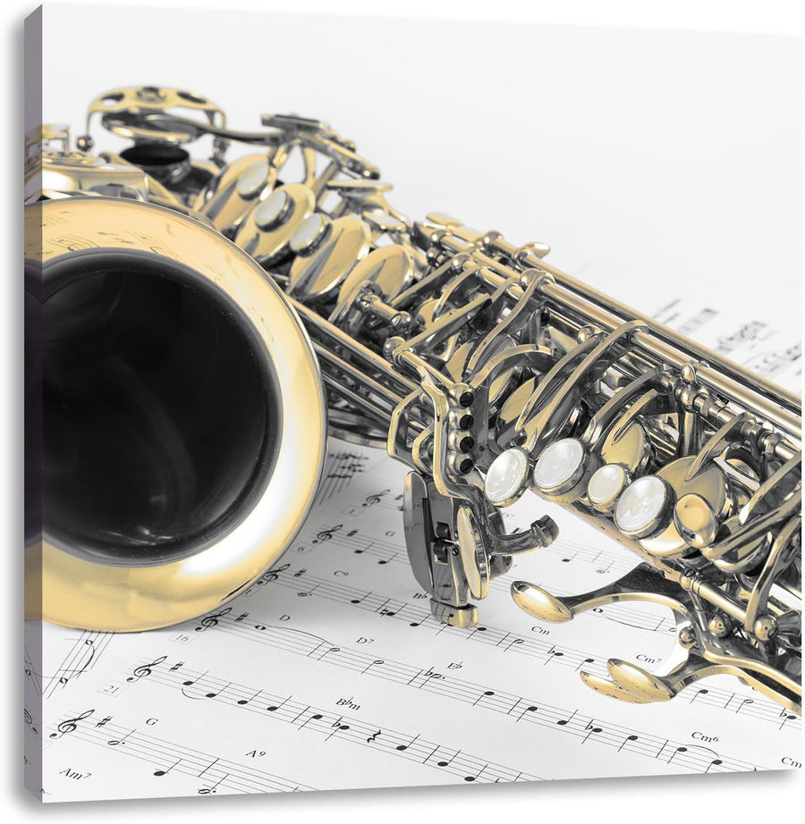 Pixxprint Saxophon auf Notenpapier als Leinwandbild/Grösse: 70x70 cm/Wandbild/Kunstdruck/fertig besp
