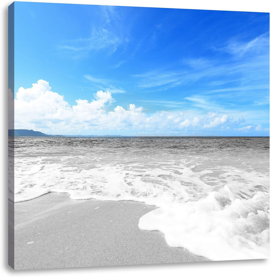 Pixxprint Sandstrand mit Welle als Leinwandbild Quadratisch/Grösse: 70x70 / Wandbild/Kunstdruck/fert