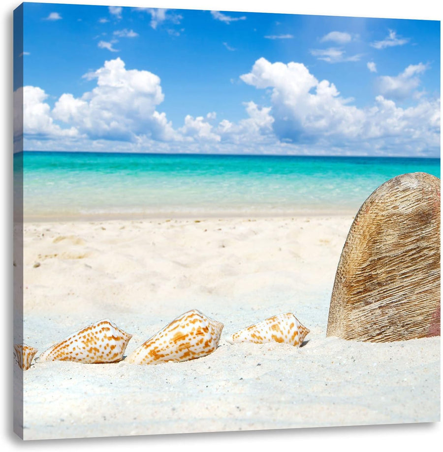 Pixxprint Sandstrand mit Muscheln als Leinwandbild/Grösse: 70x70 cm/Wandbild/Kunstdruck/fertig bespa
