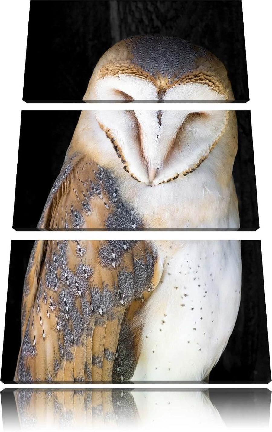 Pixxprint Schleiereule Baumhöhle / 3-Teilig/Gesamtmass 120cm Leinwandbild bespannt auf Holzrahmen/Wa