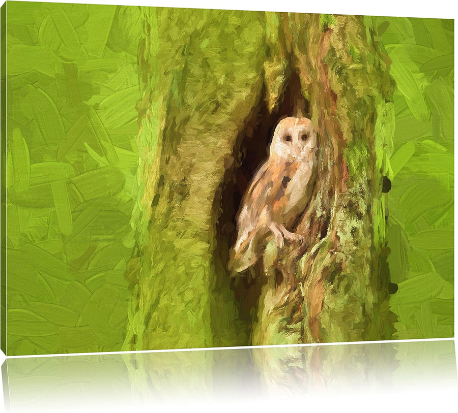 Pixxprint Schleiereule Baumhöhle als Leinwandbild/Grösse: 100x70 / Wandbild/Kunstdruck/fertig bespan
