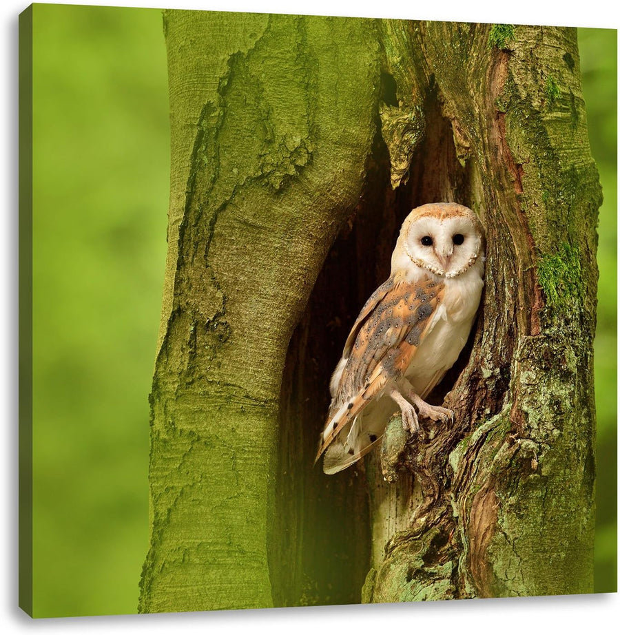 Pixxprint Schleiereule in der Baumhöhle, Format: 70x70 auf Leinwand, 70x70