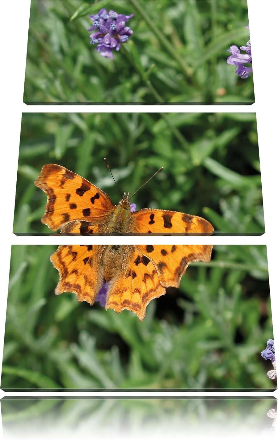 Pixxprint Schmetterling auf kleinen Blumen als Leinwandbild/Grösse: 3 Teilig (120x80 cm) cm/Wandbild