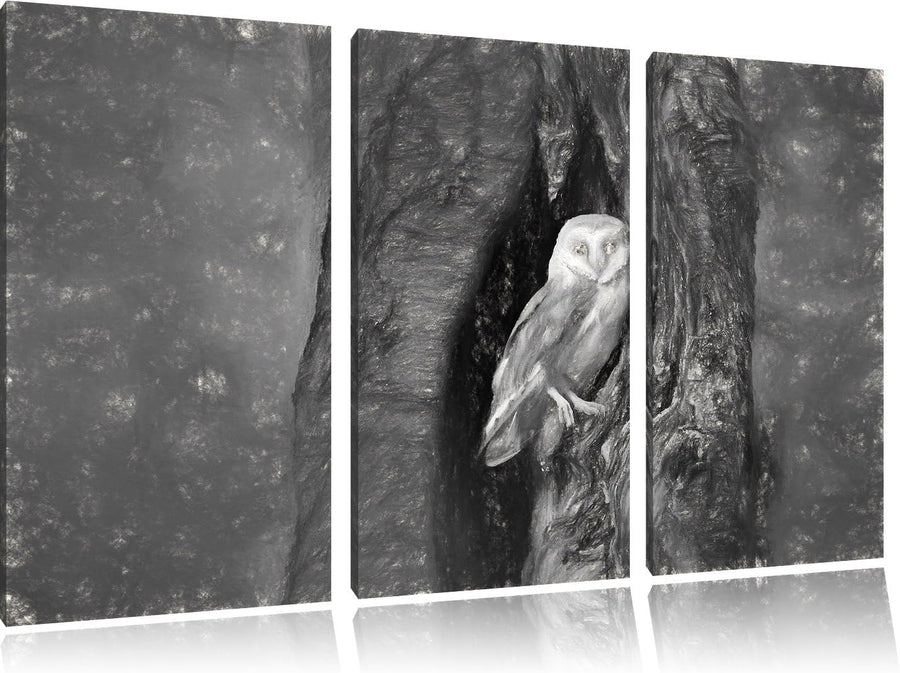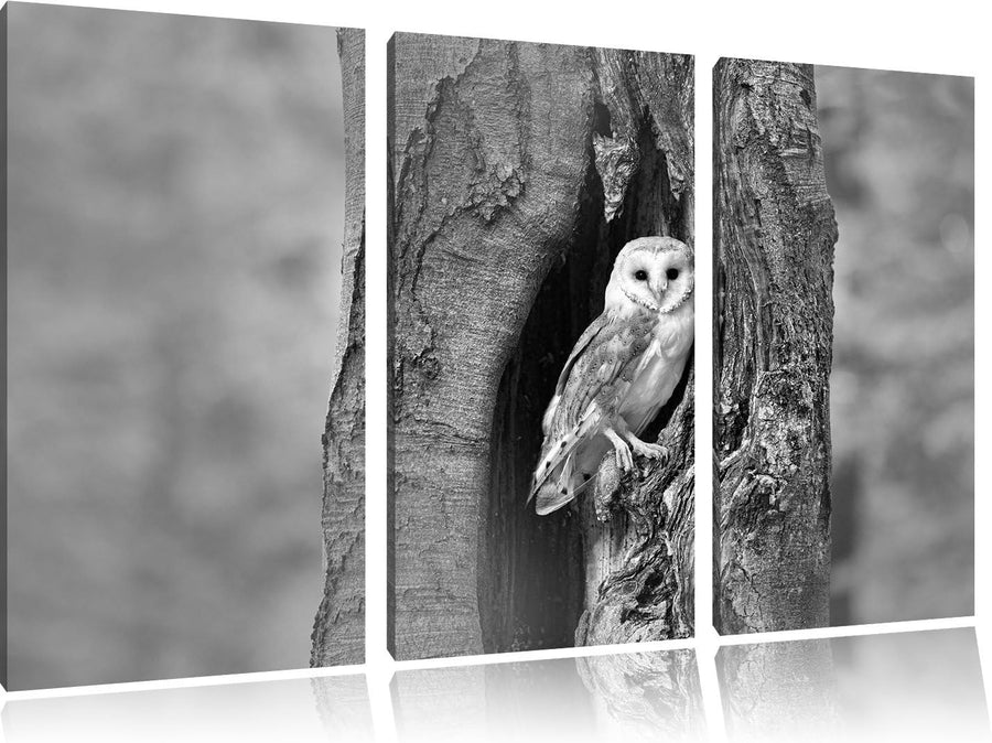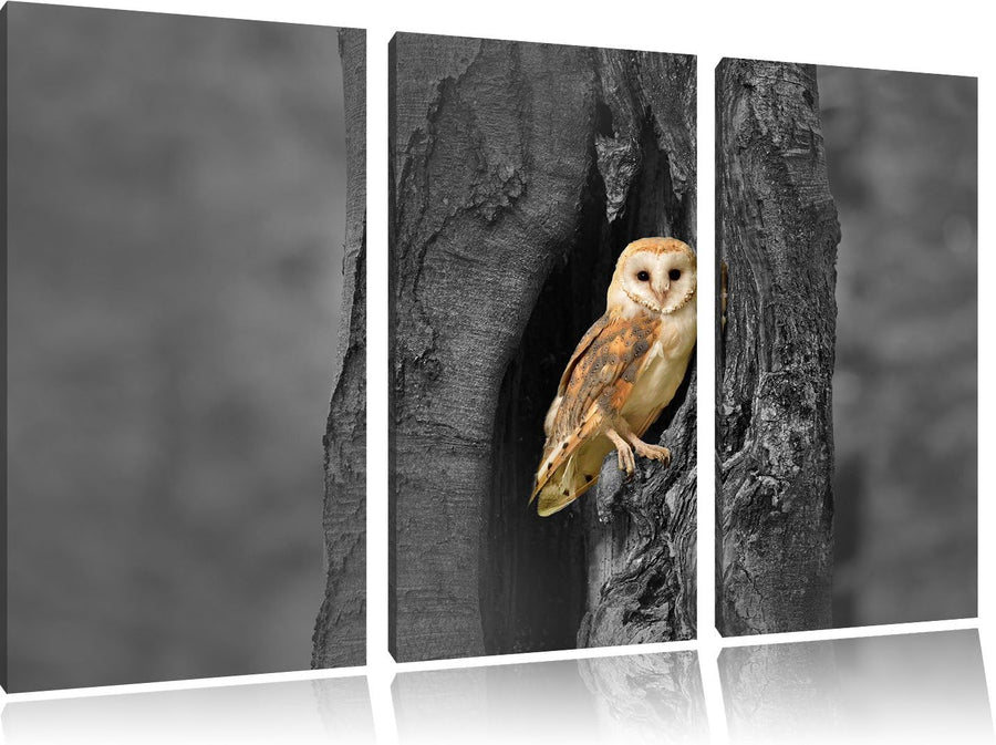 Pixxprint Schleiereule Baumhöhle als Leinwandbild/Grösse: 3 Teilig (120x80 cm) cm/Wandbild/Kunstdruc
