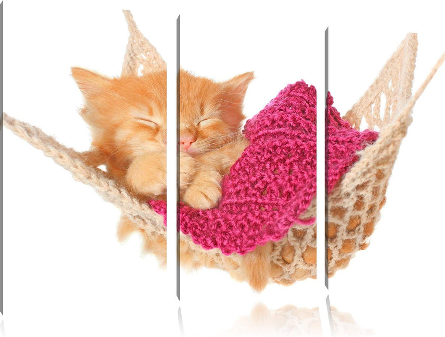 Pixxprint Schlafendes Katzenbaby in Hängematte 3-Teiler Leinwandbild 120x80 Bild auf Leinwand