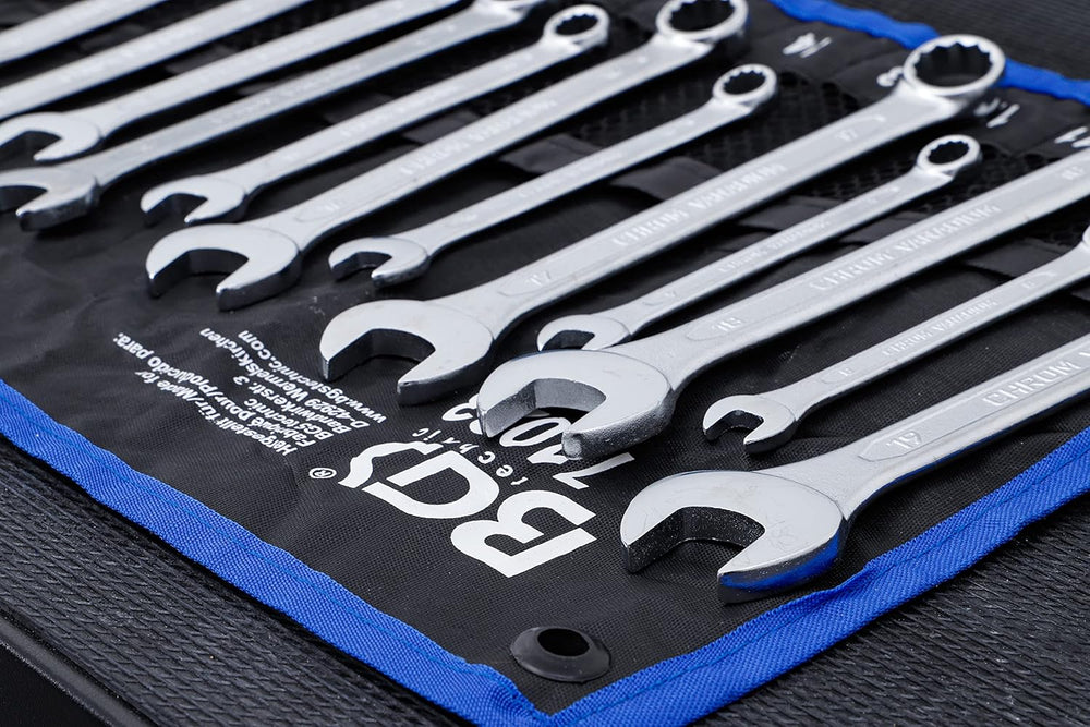 BGS 71023 | Maul-Ringschlüssel-Satz | SW 8 - 19 mm | 12-tlg. | inkl. Tetron-Rolltasche | Gabelringsc