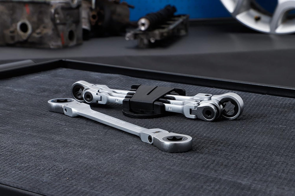 BGS 71028 | Doppel-Ratschen-Ringschlüssel-Satz | abwinkelbar | mit E-Profil Ringköpfen | SW E6 - E24