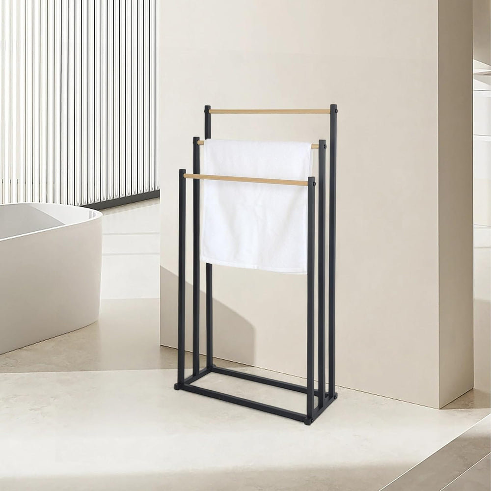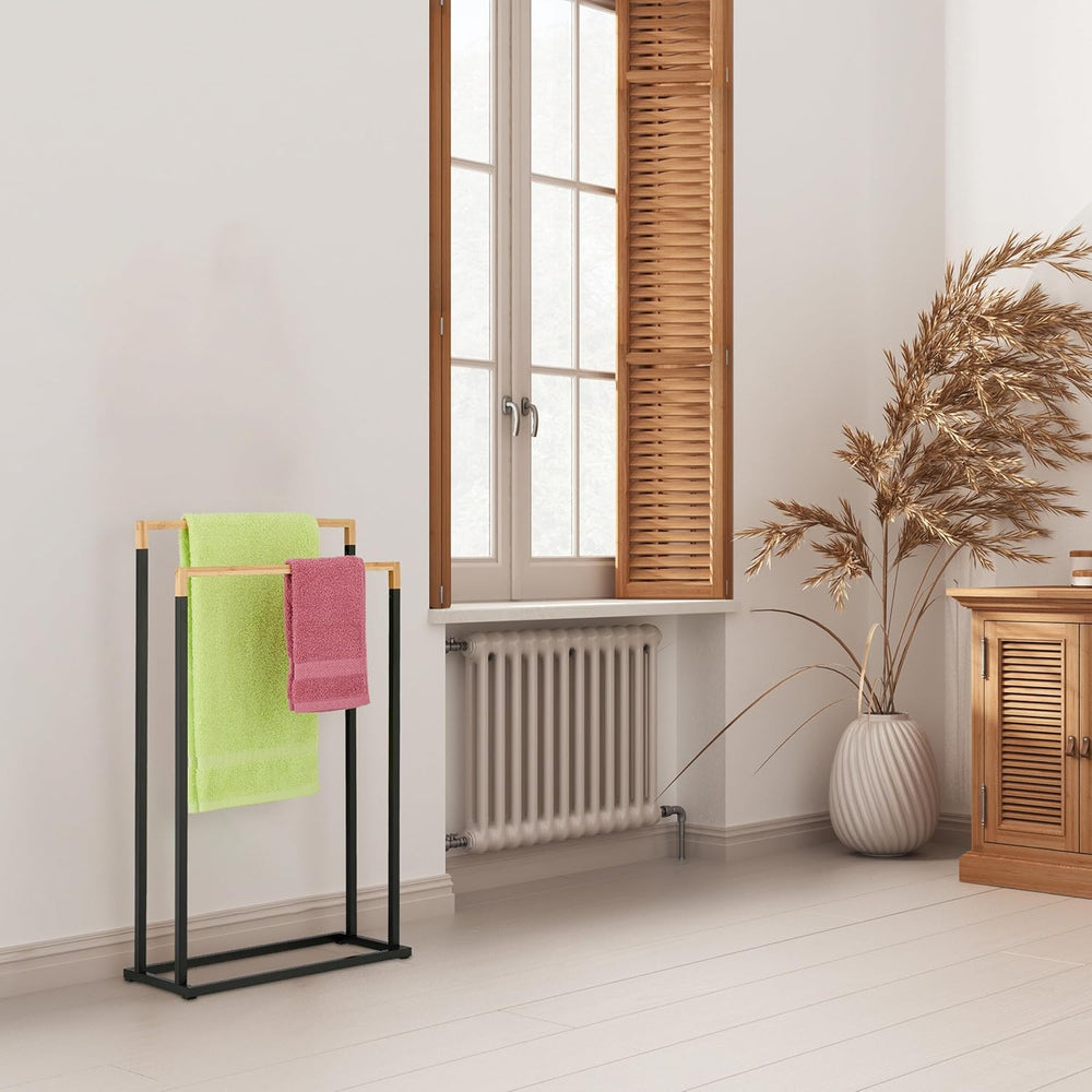 Relaxdays Handtuchständer, HxBxT: 86 x 37 x 18 cm, Metall, Holz, 2 Stangen, stehender Handtuchhalter