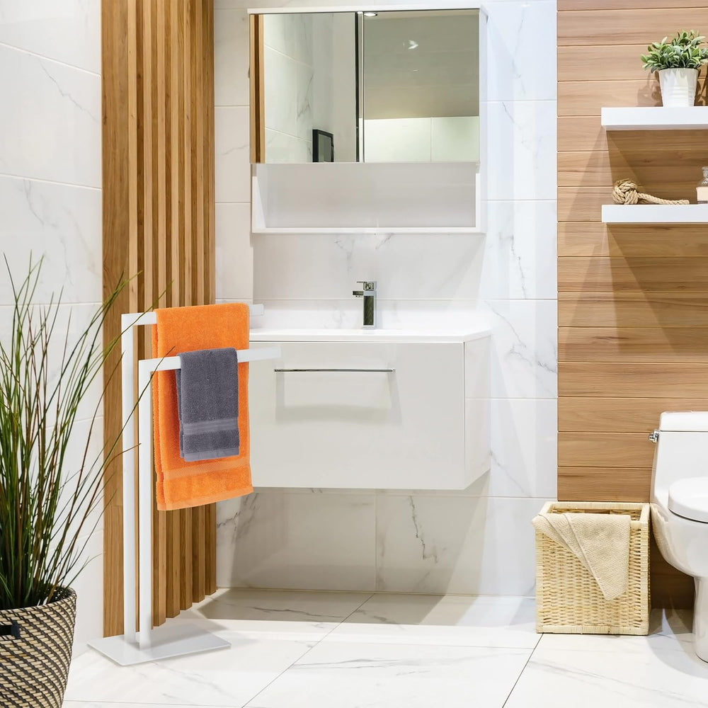 Relaxdays Handtuchständer mit 2 Handtuchstangen in U-Form HBT 82 x 44 x 28 cm Handtuchhalter stehend