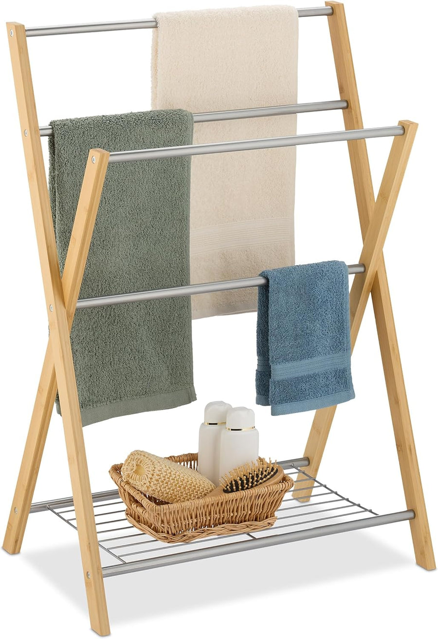 Relaxdays Handtuchhalter, 4 versetzte Stangen, Bambus Handtuchständer, HBT: 82 x 55 x 31 cm, Bad Tuc