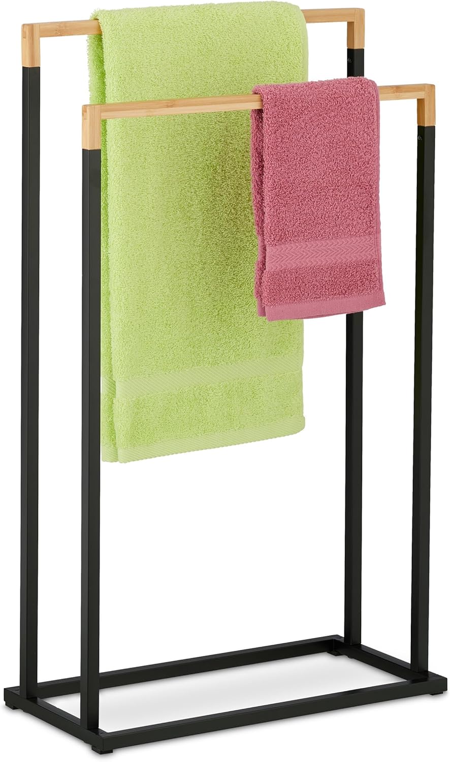 Relaxdays Handtuchhalter, freistehend, Handtuchständer mit 2 Stangen, HBT: 88 x 46,5 x 20 cm, ohne B