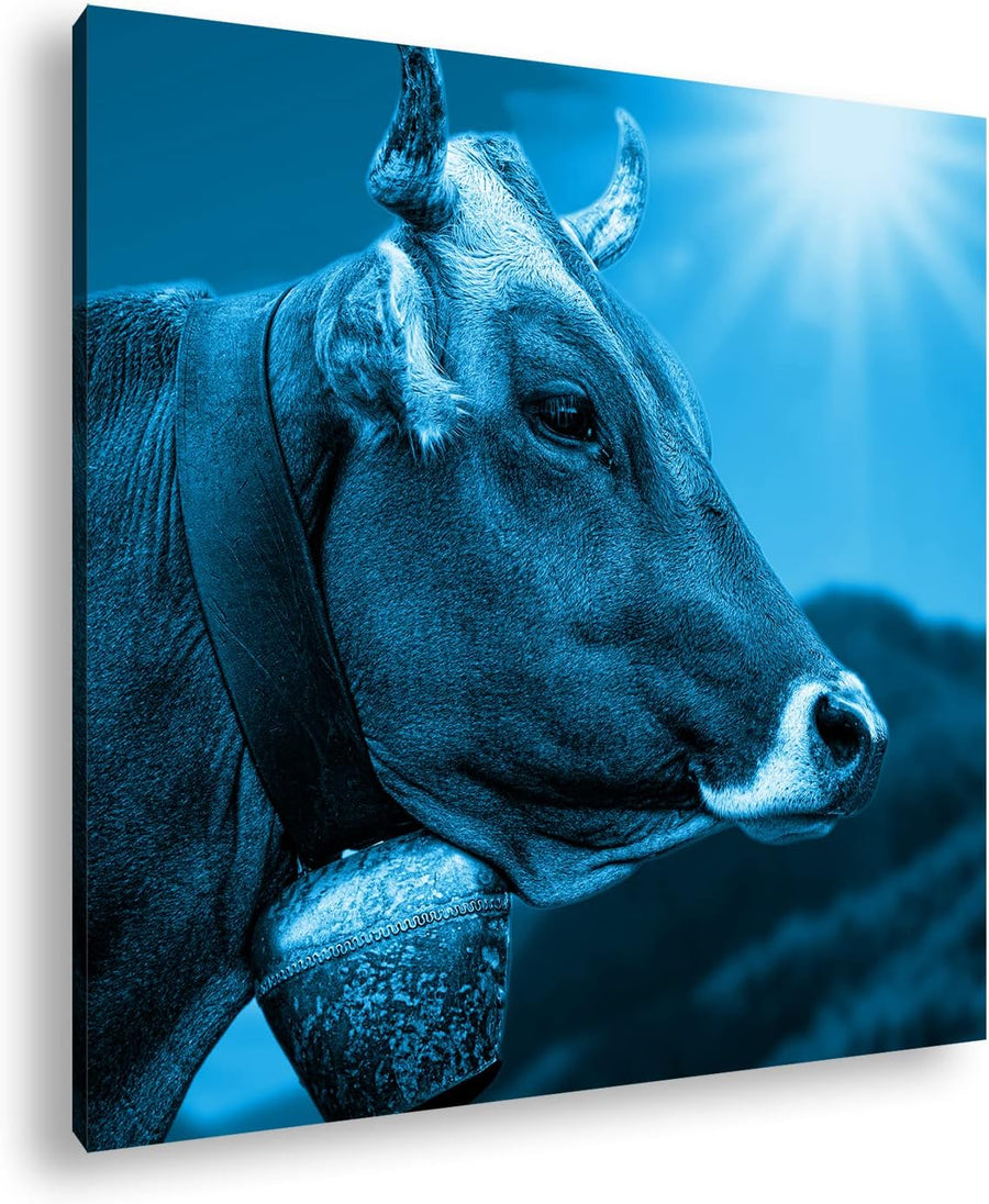 deyoli edle Alpen Kuh Format: 70x70 Effekt: Monocrome Blau als Leinwandbild, Motiv fertig gerahmt au