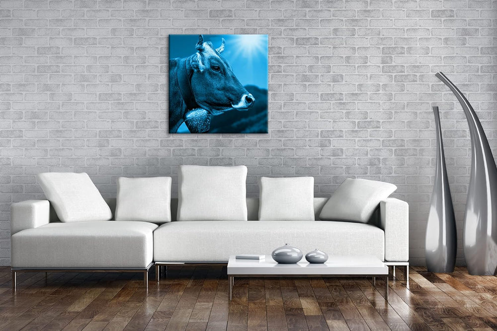 deyoli edle Alpen Kuh Format: 60x60 Effekt: Monocrome Blau als Leinwandbild, Motiv fertig gerahmt au