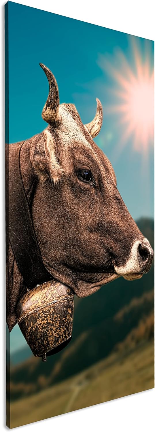 deyoli edle Alpen Kuh Panorama 80x40 cm als Leinwandbild, Motiv fertig gerahmt auf Echtholzrahmen, H
