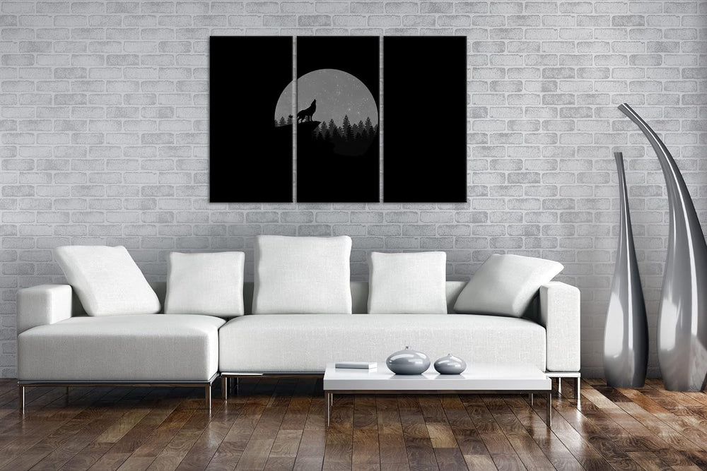deyoli düsterer einsamer Wolf Format: 3Teilig Effekt: Schwarz&Weiss als Leinwandbild, Motiv fertig g