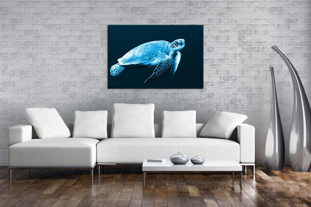 deyoli edle Meeresschildkröte Format: 80x60 Effekt: Monocrome Blau als Leinwand, Motiv fertig gerahm