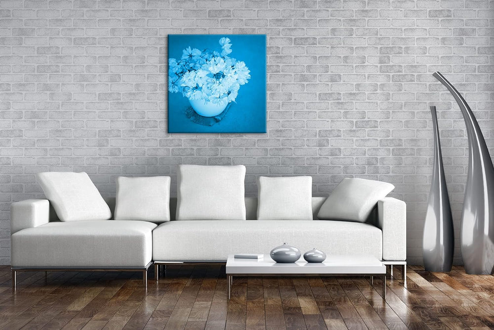 deyoli edle Blumen in Einer Vase Format: 60x60 Effekt: Monocrome Blau als Leinwand, Motiv fertig ger